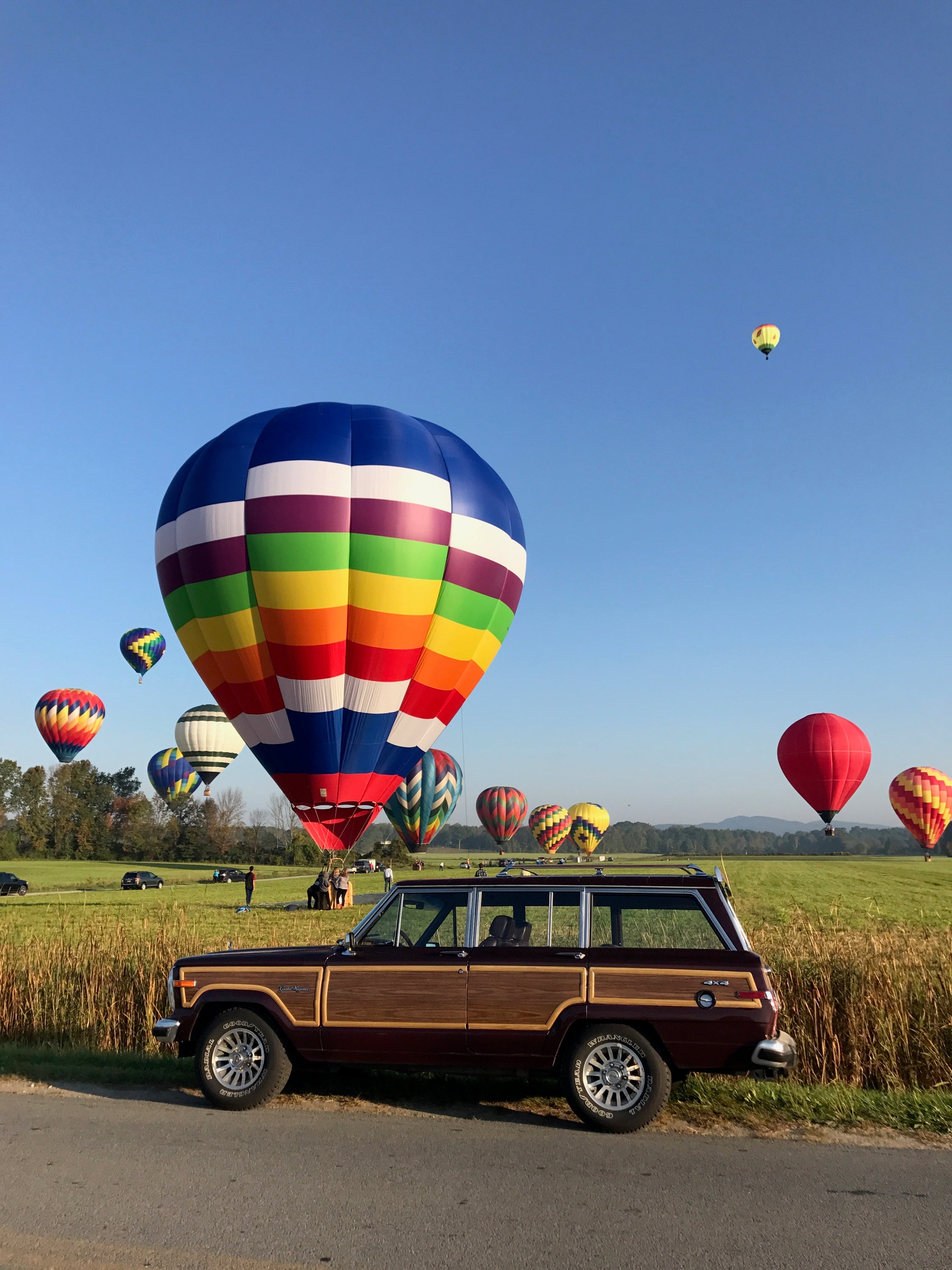 We’ve watched the sun rise over the ocean in Maine from the front seat, and run out of gas on the country roads of Vermont in the heat of summer. We’ve hauled firewood, freshly picked apples, barn sale finds, and Christmas trees. We’ve chased hot air balloons down country roads, locked the keys inside, and had the sweetest conversations with folks we meet at gas stations, reminiscing about their old Wagoneer.